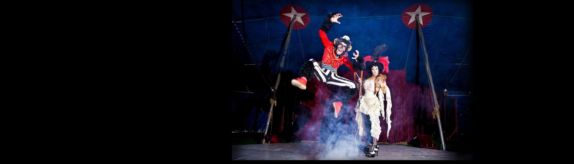 Prepare to be overwhelmed to flabbergastion as you see incredible feats of dexterity, sophistication and objectification unlike anything you’ve seen from our primate ancestors before. This isn’t your run of the mill animal show here, folks — no sir, you are in for something special! Behold the brilliance of Maitresse Magnificent and Charles the Chimp as they enslave your sympathy in a frivolous display of crowd pleasing entertainments and skills including Chinese pole, hoop diving and audience interaction. Then let them captivate you with taboo acts of subjugation!